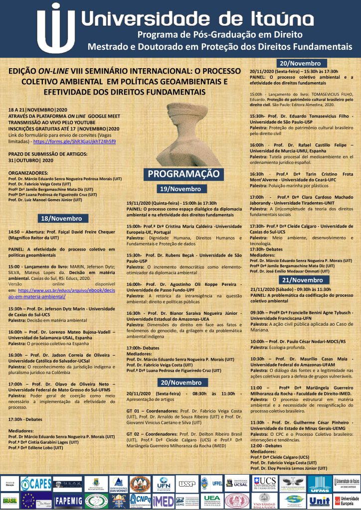 20/11/2020 das 08:30 às 11:30 GT 01 – Coordenadores: Prof. Dr. Fabrício Veiga Costa, Prof. Dr. Arnaldo de Souza Ribeiro e Prof. Dr. Giovanni Vinicius Caetano e Silva | |