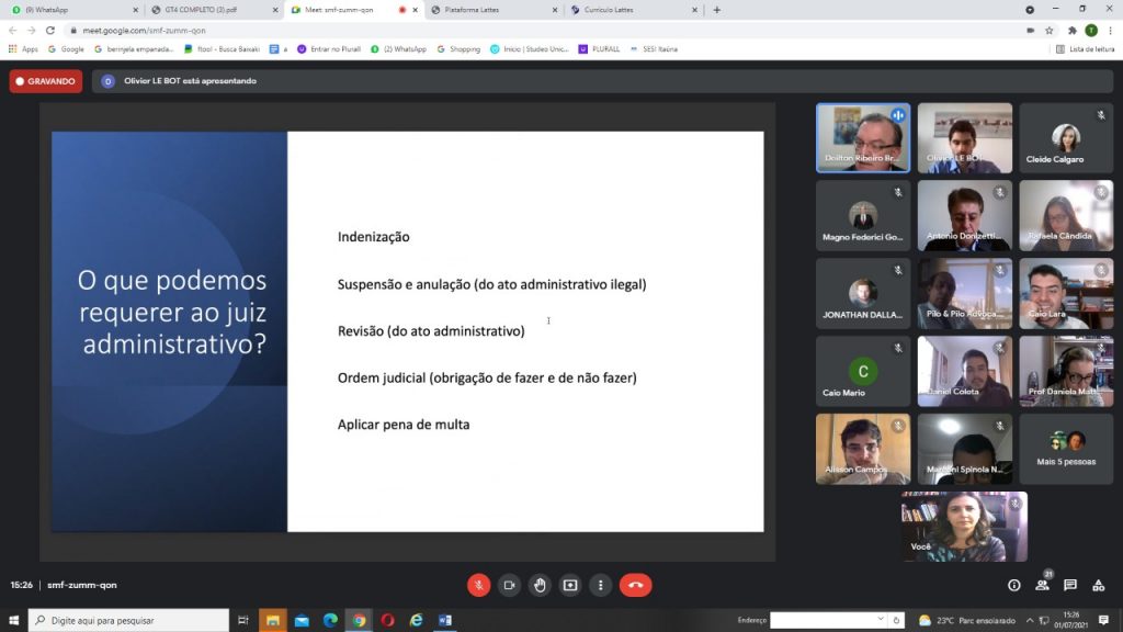 Dia 01 de Julho de 2021 (quinta-feira, das 15h às 17h)