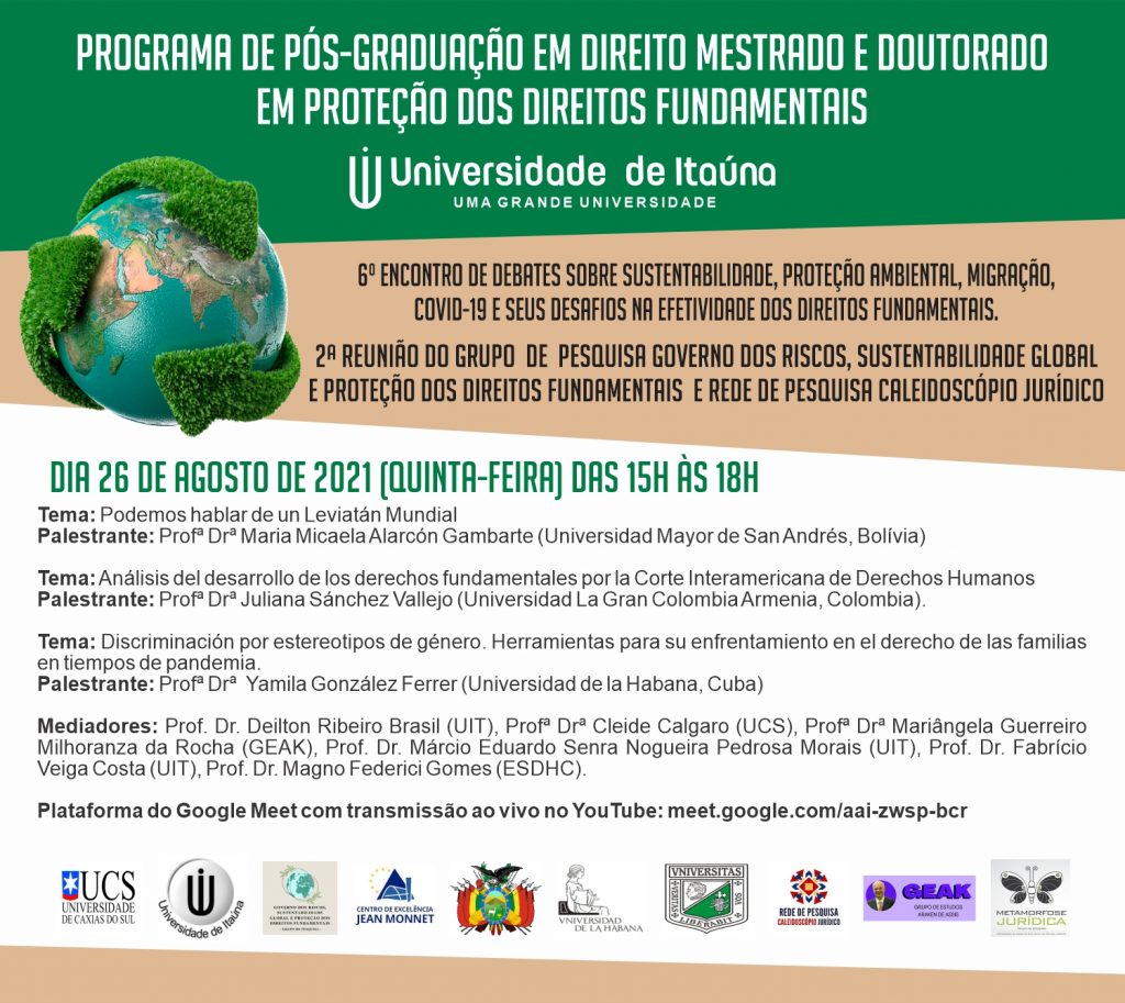 6º ENCONTRO DE DEBATES SOBRE SUSTENTABILIDADE, PROTEÇÃO AMBIENTAL, MIGRAÇÃO, COVID-19 E SEUS DESAFIOS NA EFETIVIDADE DOS DIREITOS FUNDAMENTAIS.