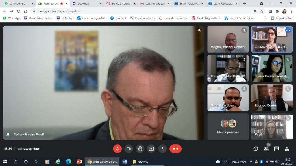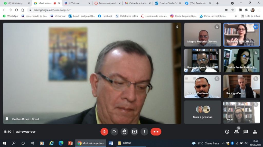 Mediadores: Prof. Dr. Deilton Ribeiro Brasil (UIT), Profª Drª Cleide Calgaro (UCS), Profª Drª Mariângela Guerreiro Milhoranza da Rocha (GEAK), Prof. Dr. Márcio Eduardo Senra Nogueira Pedrosa Morais (UIT), Prof. Dr. Fabrício Veiga Costa (UIT), Prof. Dr. Magno Federici Gomes (ESDHC).
