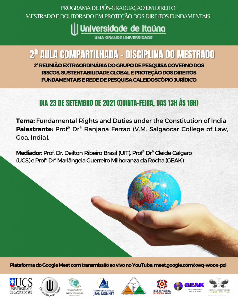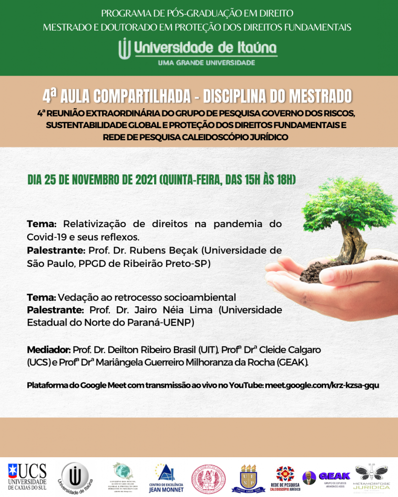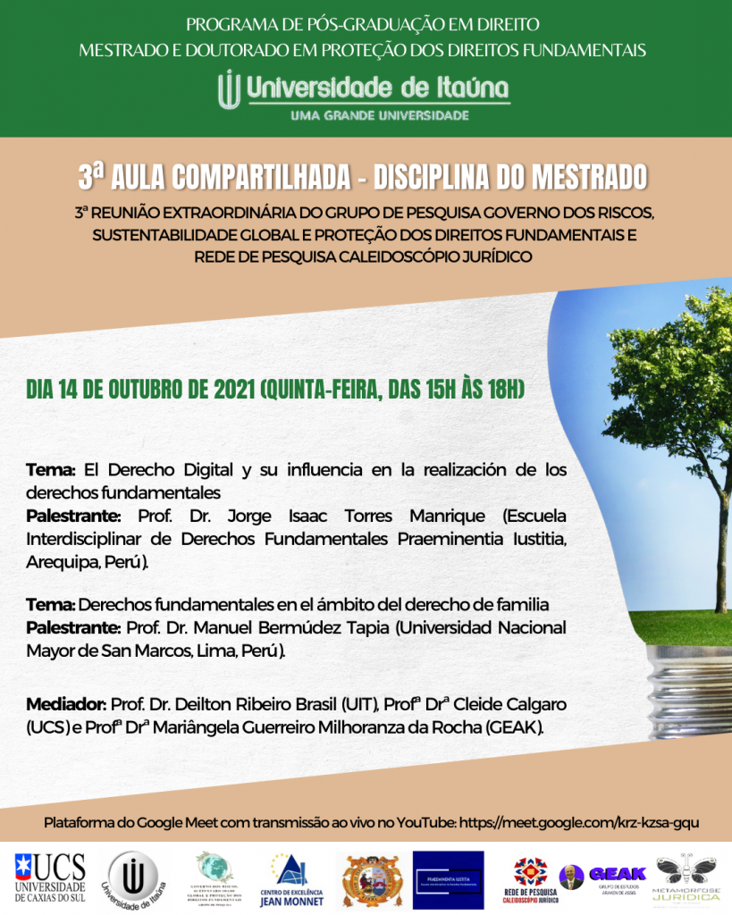 Na oportunidade, informa a data da reunião com a coordenação (para conhecimento de regras do Programa), que ocorrerá no dia 04 de setembro de 2021 (sábado), às 08 horas, remotamente, por intermédio de link a ser informando pela Secretaria do PPGD.
