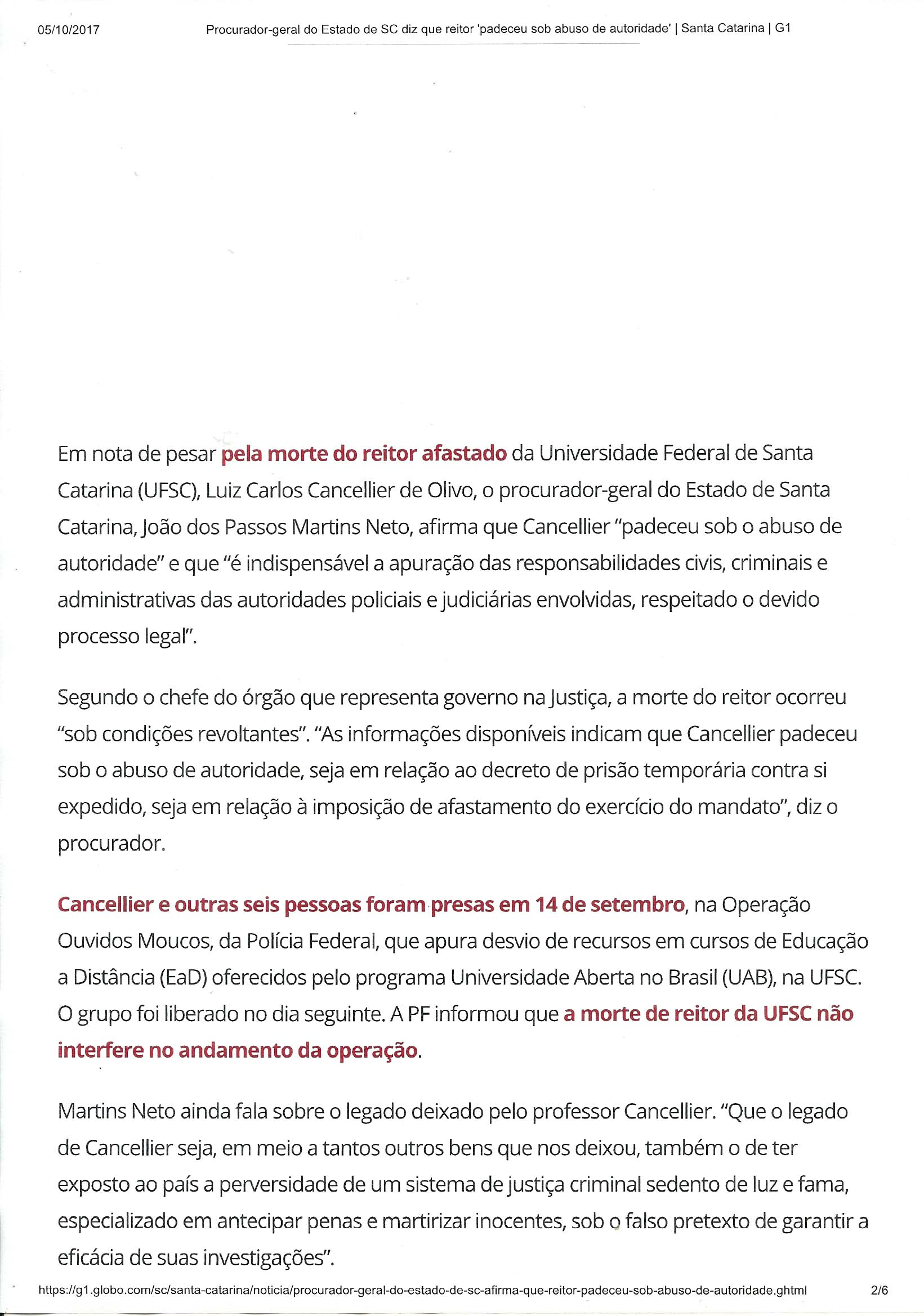 Solidarizando-se com as inúmeras manifestações de condolências à família do Reitor falecido, a Universidade de Itaúna, sem adentrar no mérito, junta a esta nota algumas notícias veiculadas por órgãos que gozam de credibilidade e respeito da população brasileira.