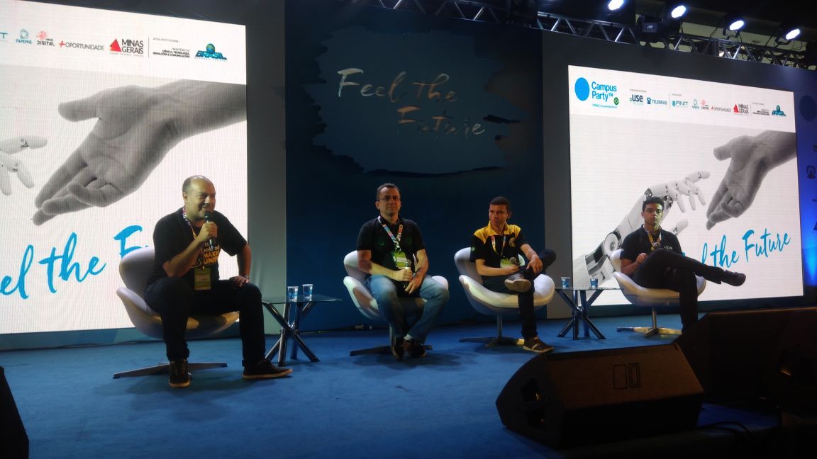 Entre os dias 1º e 5 de novembro, em Belo Horizonte aconteceu a Campus Party Minas Gerais (CPMG2), edição mineira de um dos maiores eventos de tecnologia e inovação do mundo. Em parceria com a feira FINIT, muitos projetos e trabalhos foram apresentados nesta semana. Tivemos a participação de nossos professores Felipe Cunha e Ilo Rivero, palestrando sobre Internet das Coisas e as perspectivas para o futuro. Veja algumas fotos do que rolou por lá. Maiores informações: https://campuse.ro/events/campus-party-minas-gerais-2017.